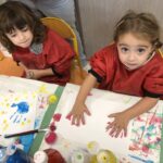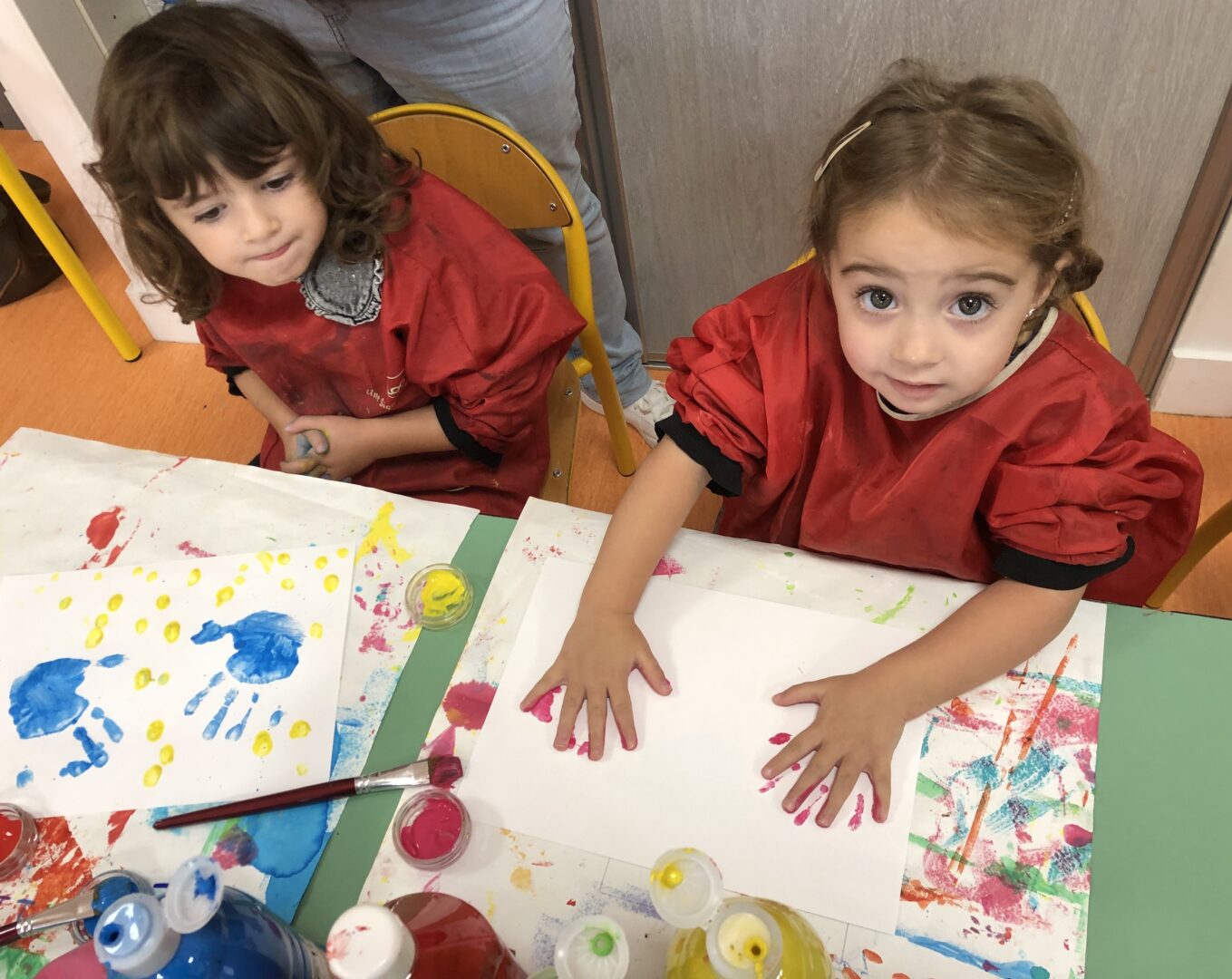 Récemment, nous avons appris à laisser des traces de peinture avec des objets de la classe et nos petites mains. Ainsi, nous avons joué aux apprentis-artistes.