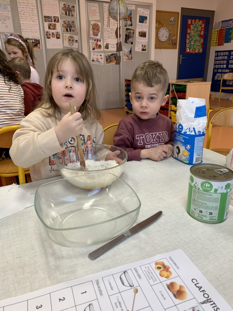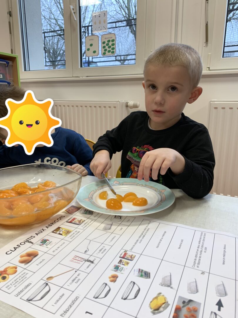 Vendredi 30 janvier, nous avons participé à un atelier-cuisine. Nous avons préparé des clafoutis aux abricots.