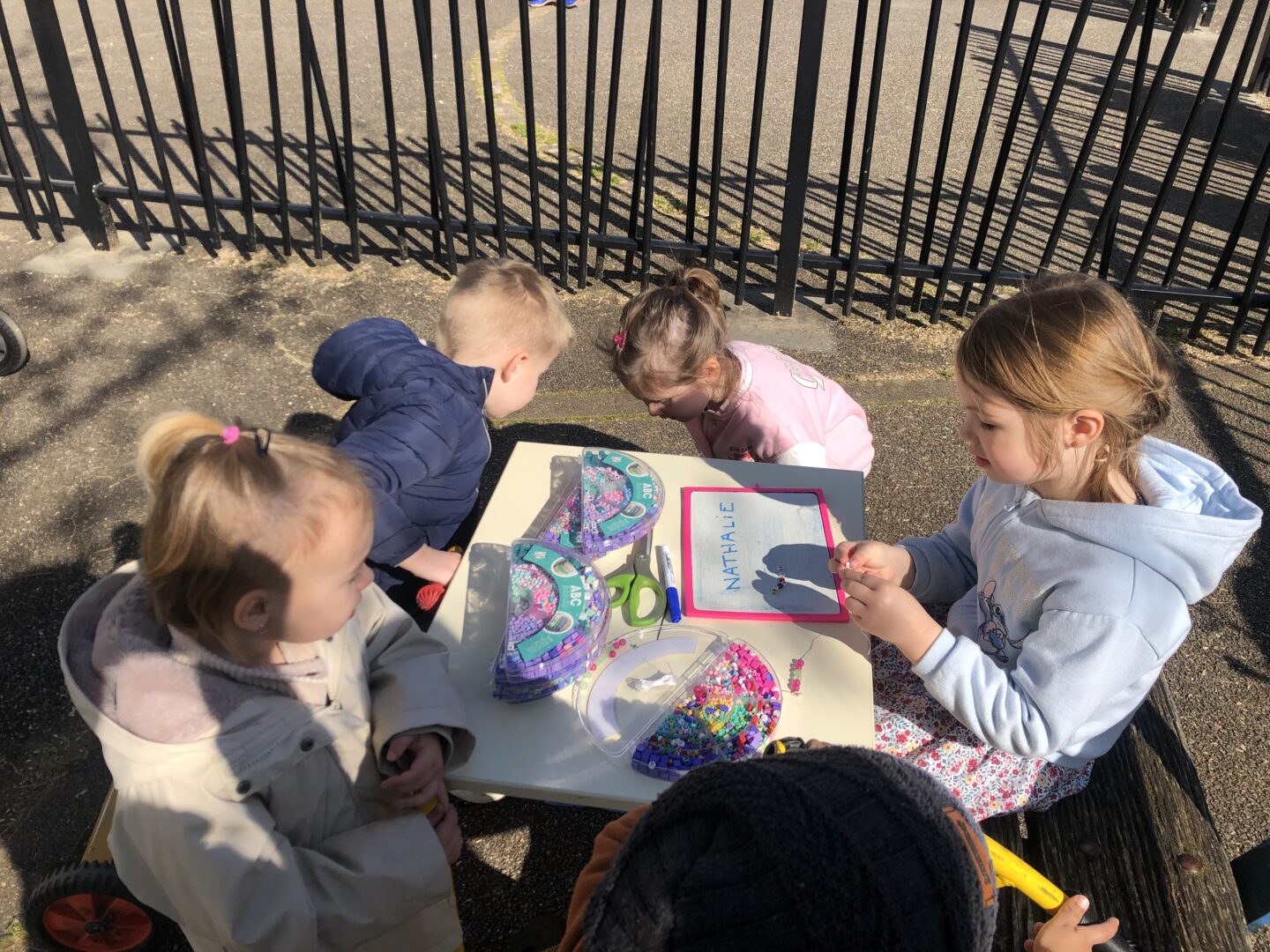 A l’occasion de la journée nationale des ATSEM, nous avons réservé une surprise à Nathalie, Marie-Agnès, Natacha et Martine. Nous leur avons offert des bracelets que nous avions fabriqués.