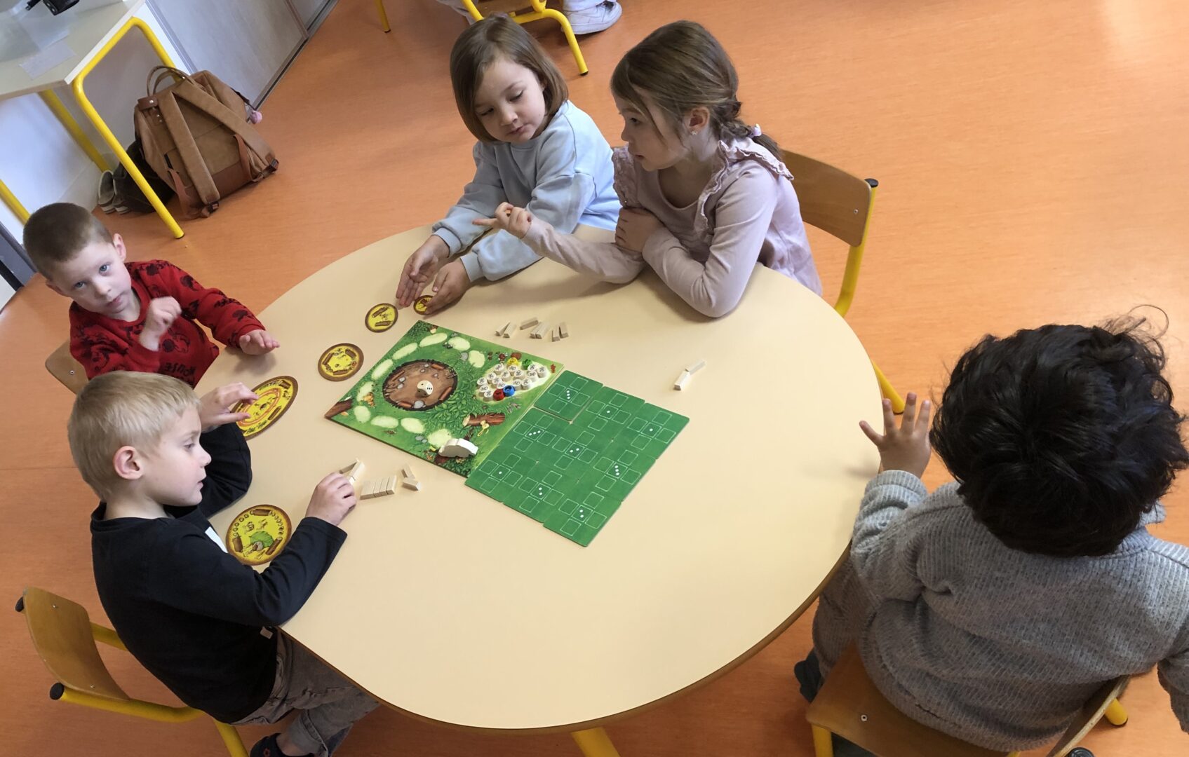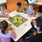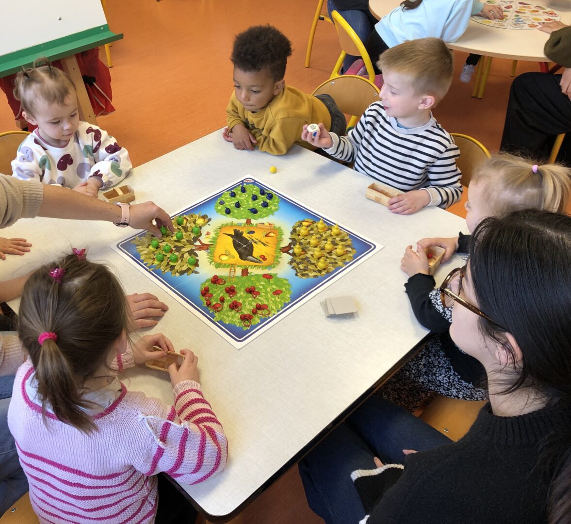 Vendredi 3 avril, les élèves de PS/MS et les enfants de la crèche se sont réunis pour une matinée « Jeux de société ». Ils ont appris à respecter des règles et pris plaisir à jouer ensemble.
